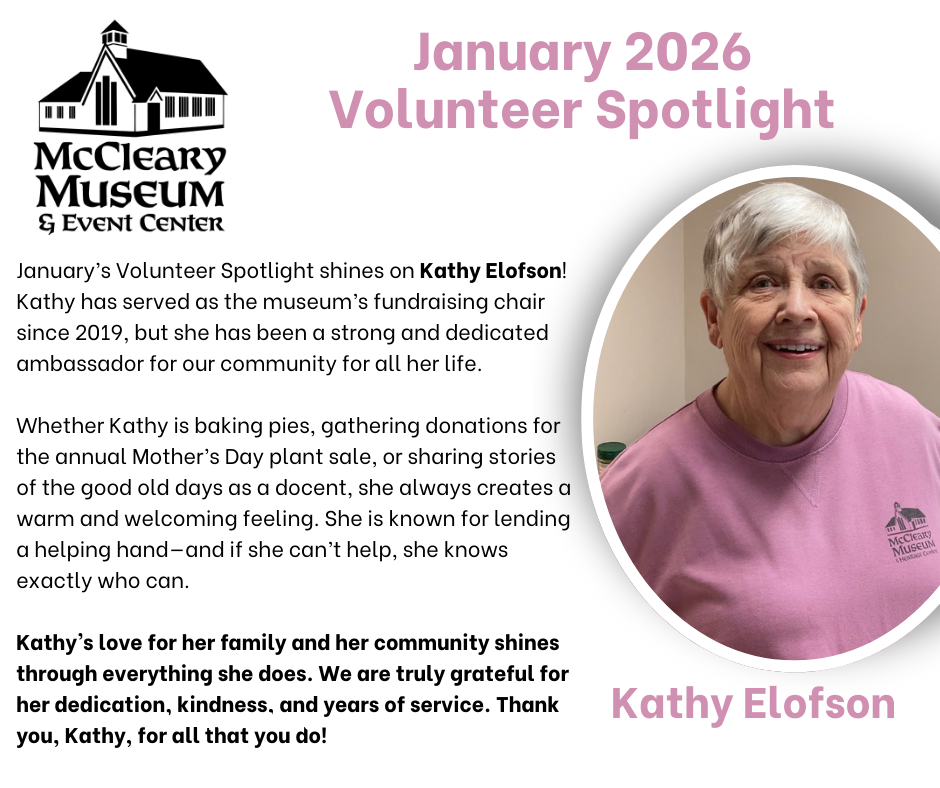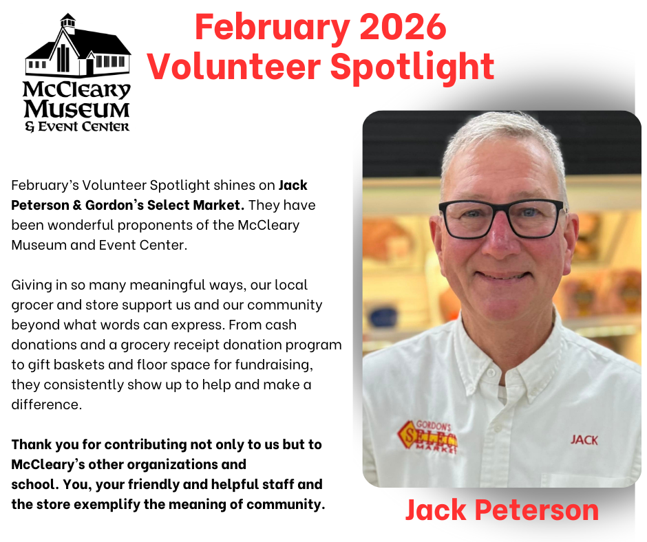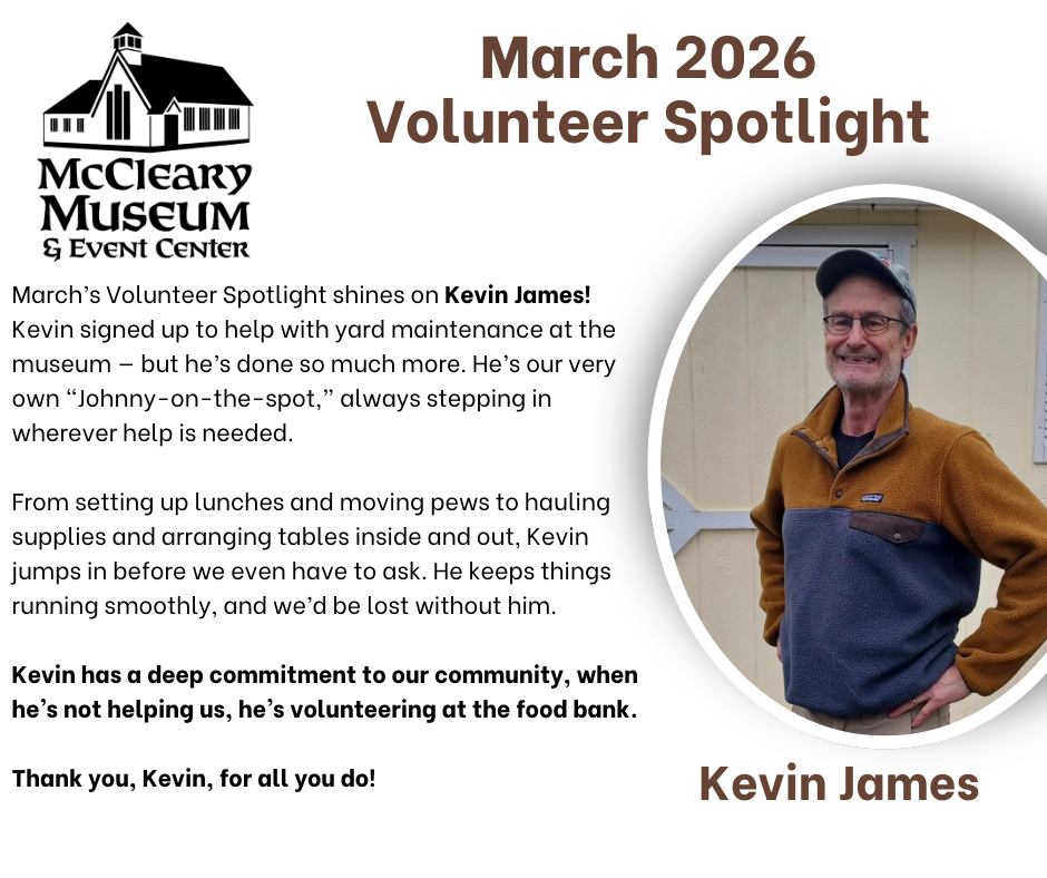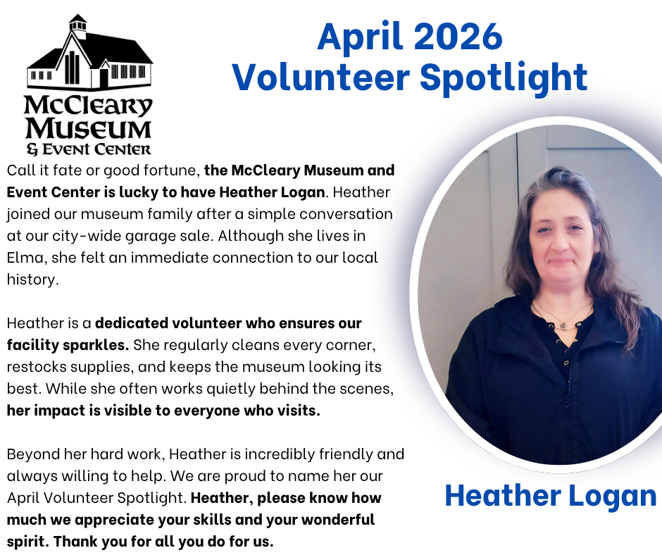 The mission of the McCleary Historical Society is to serve as the collective historical memory of the City of McCleary and to serve the community as a cultural center.
